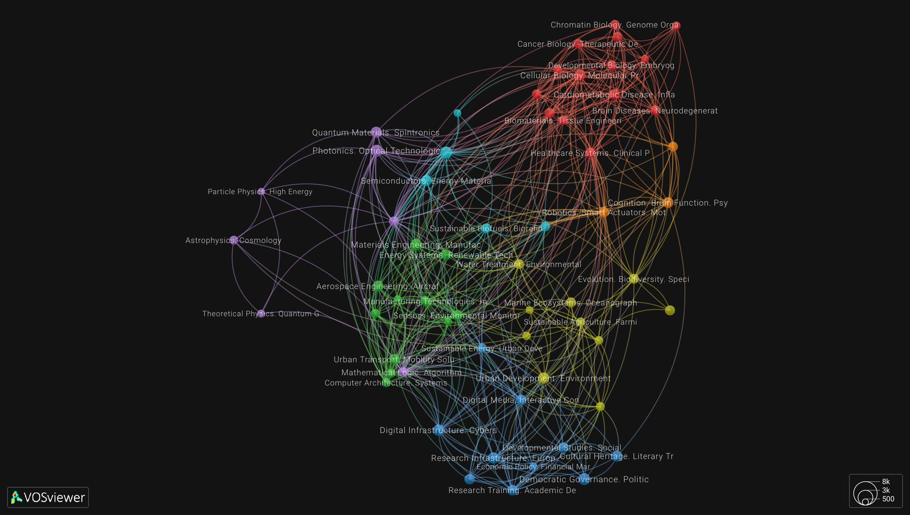 Building on these developments, in a recently completed joint research project, we developed a global map of science based on funding schemes of the R&I Framework Programs managed by the European Commission. Specifically, we analyzed approximately 82,000 projects funded by the Framework Programmes from 2003 to 2024 (FP6, FP7, Horizon 2020, and the first part of Horizon Europe).